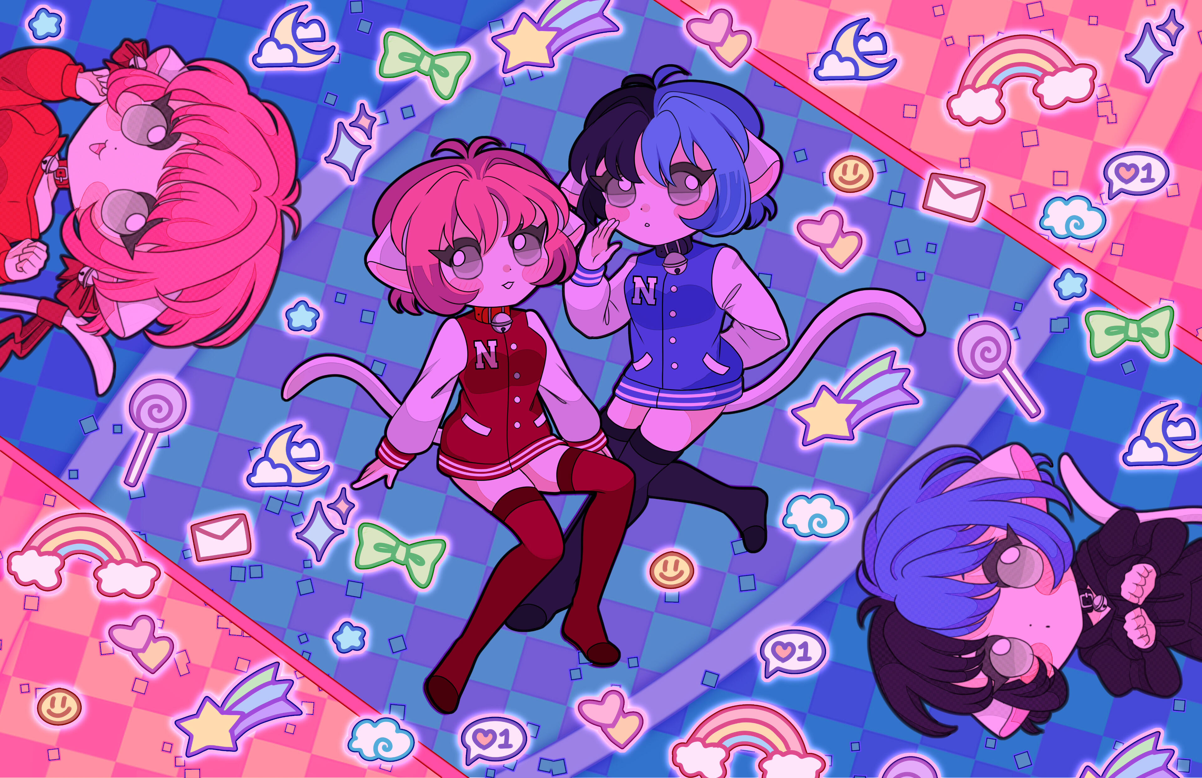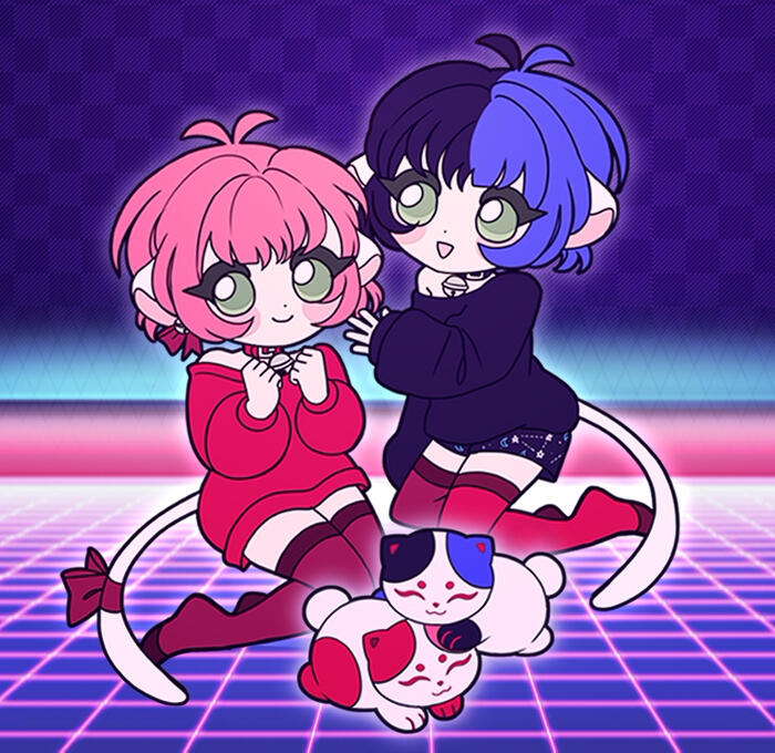 Neki and Neko are my shop mascots. They are twin catgirls inspired by the maneki-neko (or "beckoning cat"). They represent happiness, luck, and the joy I hope to bring through my art! You will see them in my original illustrations, branding materials, and original merchandise.